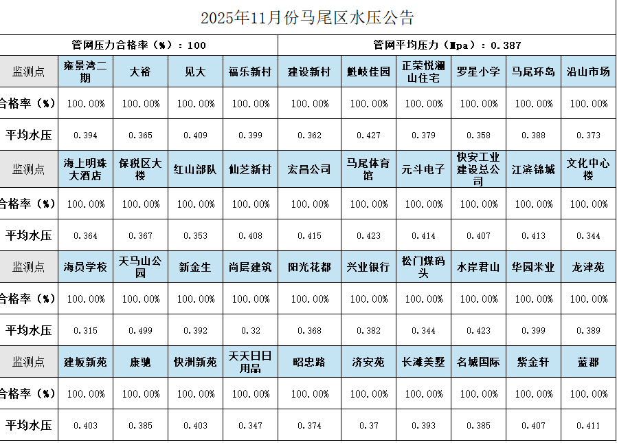 2025年11月份馬尾區水壓公告